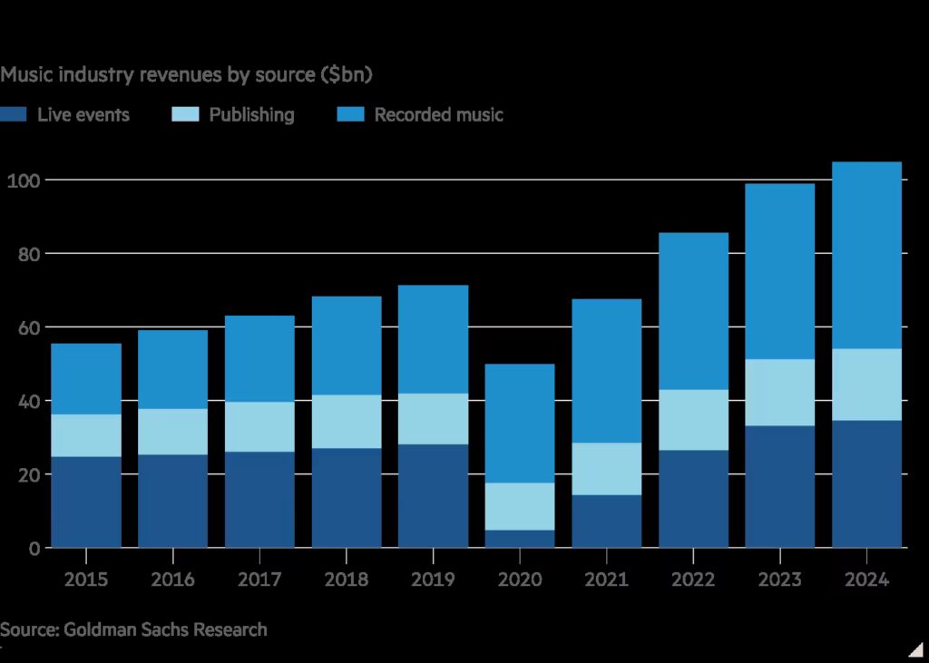 The music industry will need to be proactive. Labels may try to create their own AI artists. Meanwhile, for their human assets, live events and concerts will become even more important; these already made up about a third of the global music industry revenue last year, according to Goldman Sachs analysis.